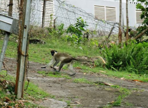 Wie schon erwähnt, gibt es auf der Insel unzählige Kirchen. Ihre Anzahl wird nur von Beauty Shops und Friseuren übertroffen. Die Menschen legen hier großen Wert auf ein gepflegtes Äußeres. Hätten wir das gewusst, als wir noch auf Guadeloupe waren, wären wir hier in Nevis zum Friseur gegangen. Vllt wären unsere Frisuren nicht ganz so verunstaltet worden, wie es die französische Friseurin mit uns gemacht hat! Als wir am Montag durch die belebten Strassen gehen, könnte man meinen, alle sind auf den Weg zur Arbeit in einer Bank oder einer Behörde. Die Männer tragen lange Hosen und gestärkte Hemden und die Frauen haben sich mit Kostüm, Kleid oder Hosenanzug herausgeputzt und scheinen sich mit ihren außergewöhnlichen Frisuren übertreffen zu wollen. Am Nachmittag begegnen uns zahlreiche Kinder und Jugendliche in Ihren Schuluniformen. Alle grüßen uns mit einem herzlichen „Good Afternoon“. Nachdem wir zu Fuß die nähere Umgebung erkundet hatten, besuchen wir am Dienstag den Botanischen Garten. Wir bevorzugen es mit dem Bus zu fahren und nicht mit dem Taxi. Das ist nicht nur günstiger, sondern auch viel authentischer, oft kommen wir auf diesem Weg mit den Einheimischen ins Gespräch. Auf den Hauptstrassen verkehren Kleinbusse, die, sofern noch Platz ist, jeden so weit mitnehmen, wie er möchte. Unser Fahrer macht für uns sogar einen kleinen Umweg und setzt uns nur wenige 100 m vor dem botanischen Garten ab. Auf dem letzten Stück werden wir mal wieder von einem Hund begleitet, welcher dem freundlichen Personal am Eingang des Gartens, schon bekannt ist. So wie es scheint, heftet er sich öfter an Touristen und gibt sich für deren Hund aus! Leider darf er nicht mit hinein und so bestaunen wir die Vielfalt der Pflanzen und Blüten ohne ihn. Auf dem Rückweg müssen wir ca 2km laufen, bis wir die Hauptstrasse erreichen, um einen Bus zu stoppen. Unser Weg führt vorbei an riesigen Villen mit großen gepflegten Gärten. Und dann sehen wir sie! Die freilebenden Affen. Sie toben durch die Gärten, huschen über die Strassen, klettern auf Mauern und Bäumen. Das Ziegen, Hühner und sogar Kühe frei herumlaufen und unseren Weg kreuzen ist schon fast normal geworden. Aber diese Affen sind schon etwas Besonderes. Auch einen Kolibri können wir beobachten, wie er nur einen Meter vor unseren Augen den Nektar einer Blüte trinkt.