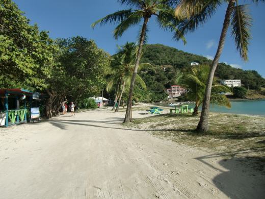 Am 29.01. verlassen wir Nevis. Unser Ziel ist Tortola, eine Insel der British Virgin Islands (BVI). Nach 22h Fahrt gehen wir in Road Harbour vor Anker. Die BVI sind ein Segelparadies und es wimmelt hier von Charteryachten. Eine Art segelnder Massentourismus erwartet uns. Am Dinghiponton lernen wir Bill kennen. Er ist Brite und lebt hier mit seiner Frau Ann auf seinem Boot. Bill telefoniert für uns mit dem Hafenmeister einer kleinen, verwaisten Marina und vereinbart einen Termin zum Wasser bunkern. Danach nimmt er uns mit seinem Auto ein Stück mit, um uns die wichtigsten Dinge zu zeigen: Müllcontainer, Bank, Zoll- und Einreisebehörden und eine Wäscherei. Bei der Frage nach der Wäscherei kommt natürlich gleich die Gegenfrage, ob wir Klamotten oder Geld waschen wollen! Die BVI sind sozusagen die Schweiz der Karibik. Hier soll es mehr Briefkastenfirmen als Einwohner geben. Am Freitagabend gehen wir in eine gemütliche Bar, was zur Folge hat, dass wir am Samstag bis zum späten Mittag schlafen. Die Cocktails hier können durchaus geringe Spuren von Säften enthalten. Rum und Co haben aber den größeren Anteil. Nach dem Frühstück um 15 Uhr! stöbern wir etwas im Hafenhandbuch und entdecken die Insel Jost Van Dyke, nur 15Meilen entfernt. Hier soll samstags in Foxy´s Strandbar richtig Party sein und wir wollen mal wieder tanzen. Also: es bleibt keine Zeit. Der Anker muss hoch und ab geht’s nach Great Harbour. Foxy´s Bar ist legendär und voll mit Seglern aller Nationen. Hier wird allabendlich gefeiert und auch VIPs wie John Travolta und Ted Kennedy wurden hier schon gesehen. Die anderen Bars haben dagegen einen schweren Stand. Es wimmelt in der Bucht vor Segelyachten, ansonsten ist der Name Great Harbour etwas übertrieben. Die Hauptstrasse besteht aus festgefahrenem Sand, auf der einen Seite der Strand und auf der anderen Seite die Bars, zwei Minimärkte, eine Bäckerei und die Polizeistation.