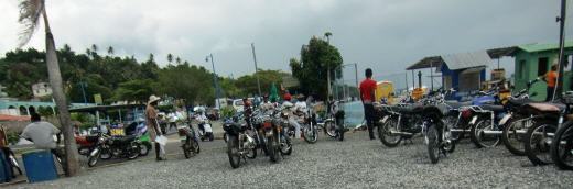 Von Luperon aus wollen wir das Landesinnere erkunden, suchen aber vergeblich nach einem Motorrad- oder Autoverleih. Zum Glück gibt es ja Wendy! Wir tragen unser Anliegen vor und sie will sich der Sache annehmen. Unterdessen gehen wir zur Bank, um Geld abzuheben. Wir stehen eine Stunde in der Schlange vorm Schalter. Als wir aus der Bank kommen werden wir schon von einem jungen Mann erwartet, der uns sein Moped für umgerechnet 12€ für den Rest des Tages überlassen will. So fahren wir los und sind von der Schönheit der Natur begeistert. Kühe, Esel und Pferde grasen am Wegesrand, wir fahren durch kleine Dörfer, an Kakao und Zuckerrohrplantagen vorbei und sehen Kuhhirten bei Ihrer Arbeit zu Pferd. Unterwegs halten wir an einem dominikanischen Imbiss. Es ist nicht mehr wie ein Wellblechdach auf Stützen und ein paar selbstgezimmerte Tische und Bänke. Über Rauch hängen Würste und Fleisch. Mutig entscheiden wir uns für die Wurst. Sie wird abgewogen und dann frisch gegrillt. Als Beilage bekommen wir Yuka, eine kartoffelähnliche Wurzel. Wir fahren insgesamt 130km durch das Land. Als wir abends das Moped bei Wendy abgeben, laufen die Vorbereitungen für den Kinoabend und die Bar ist schon voll. Es gibt heute neben Popkorn auch Hot Dogs mit Würstchen vom Grill für nur 25 Peso, das sind weniger als 50 Cent. So lassen wir den schönen Tag mit einem Bier und Hot Dogs ausklingen. In den anderthalb Wochen, die wir hier verbrachten, waren wir sehr fleißig. Christine hat die große Wäsche bewältigt, Frank hat den Windgenerator repariert und den Vergaser vom Benzingenerator zerlegt. Leider fehlt uns hier eine Membran, die wir nicht so einfach bekommen können. Zum Glück kann uns ein Freund das Ersatzteil in Deutschland bestellen und postlagernd nach Panama schicken. Christine lernte an der Nähmaschine zu nähen und wir nähten zusammen einen Windschutz für unser Sonnendach. Die Sprayhood über dem Niedergang ließen wir von einem ansässigen Schneider reparieren. Einzig und allein die Edelstahlhalterung vom Windgenerator wollen wir hier nicht reparieren lassen. Frank traut den Schlossern die Arbeit mit Edelstahl nicht zu. Die Jungs stehen mit FlipFlops und nacktem Oberkörper auf der Strasse vor der Werkstatt, um dort zu trennen und zu schweißen. In der Werkstatt bekommt man kein Bein auf die Erde! Die Berufsgenossenschaft würde die Hände über dem Kopf zusammenschlagen! Nun ist die Zeit gekommen, um hier Lebe wohl zu sagen, sonst besteht die Gefahr, dass auch wir hier hängen bleiben! Kuba wird das nächste Ziel sein. Dort werden wir längere Zeit verbringen. Wir wollen auch Kuba auf dem Landweg erkunden, um zu sehen, wie es sich in dem sozialistischen Land lebt.
