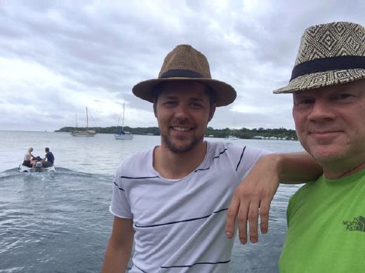 Die beiden sind Piloten und fliegen den Privatjet eines Saudis. Im Moment ist ihre Maschine in London zur großen Inspektion. Wie sie berichten, wird der Jet dort total zerlegt und alles durchgecheckt. Das verschafft ihnen drei Monate Urlaub und so tingeln sie gemeinsam durch die Welt. Eben noch in Ägypten beim Wracktauchen und jetzt auf Segeltörn in Mittelamerika. Für diese Jungs ist die Welt ein Dorf.