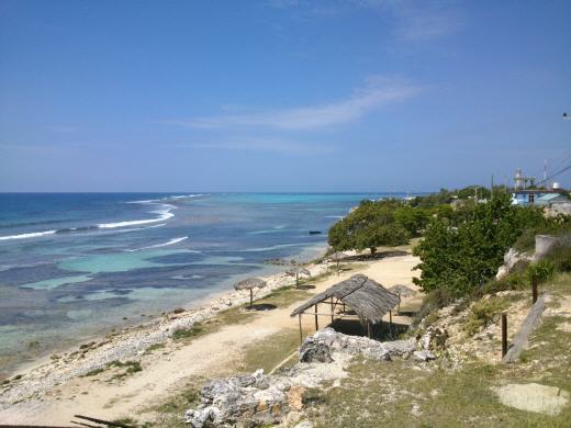Gegenüber der Stadt ist eine kleine Insel, zu der eine Brücke vom Festland führt. Da dort recht häufig Passanten zu sehen waren, fuhren wir mit dem Dhingi rüber, um sie uns anzusehen. Wir gaben ihr den Namen „die Müllinsel“. Überall lagen Flaschen, Essensverpackungen und anderer Plastikmüll herum. Es tat einem das Herz weh, soviel Müll war da. Die Stadt selbst war schon vermüllt, aber selbst hier, wo die Natur Vorrang hat. Der Fluch der Plastikverpackungen ist vielleicht der Nähe zu Amerika zuzuschreiben. Als Columbus diese Insel entdeckte, sagte er: „Das ist das schönste Land, das menschliche Augen je gesehen haben.“ Das war lange vor der Zeit des Plastikmülls. Wir beschlossen Lebensmittel und Getränke zu kaufen und die Bucht zu erkunden. Auf der anderen Seite ist ein schönes Natur Ressort mit einer herrlichen Landschaft, völlig unberührt und abgelegen. Wir ankern vor einer traumhaften Kulisse, mit weißem Sand und Palmen. Im Wasser sehen wir Fischschwärme und Seesterne. Und am Strand, wieder Müll. Wir wissen, wir können Dieses nicht verhindern, aber unser Müll liegt dort nicht. Der wird ordentlich in Müllcontainern entsorgt und wenn wir keinen finden, solange gelagert. Selbst Kippen werden wieder eingepackt. Auch beim Einkaufen nehmen wir selten Plastiktüten, meistens kommt der Rucksack zum Einsatz. Von einem Umweltbewusstsein, wie wir es kennen, sind die Menschen von hier leider weit entfernt.