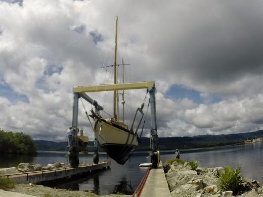 Gleich daneben gibt es einen Travellift für Yachten und eine Stellfläche an Land, wo einige Bootsbesitzer emsig an ihren Schiffen arbeiten. Wir geben Vollgas und nach nur 24 Stunden sind wir wieder im Wasser und verlegen uns zurück ins 11 Meilen entfernte Bocas.
