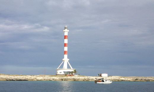 Danach erkunden wir die Insel und den Leuchtturm. Dort arbeiten zwei Leuchtturmwächter, die uns bereitwillig auf den Leuchtturm führen und uns die Playa zeigen. Als wir wieder zum Schiff fahren wollen, drücken sie uns noch eine große Königsmuschel in die Hand. Daraufhin kommen wir noch einmal zurück, mit zwei Bier, zwei Stücken Kuchen und zwei Salamischeiben für die Hunde. Dies sollte nur als Dankeschön gedacht sein, aber schon kommt ein Wärter mit ner Hand voll Kartoffeln zu uns! Ein schönes Erlebnis! Wir segeln weiter. Diesmal mit ner Schleppleine als Angel. Christine dachte, man könnte ja mal einen schönen Fisch für Frank angeln. Aber wir haben kein Angelglück, nichts beißt an. Vor Cayo Lago holen wir sie wieder an Bord und kurz darauf ankern wir. Der erste Rund um Blick ist traumhaft schön. Türkisfarbenes Wasser, schneeweiße Strände und strahlendblauer Himmel. Täglich Baden und Schnorcheln wir im kristallklarem Wasser. Christine und Andreas von der Bonafide, die gleich neben uns ankert, tauchen nach Conchesmuscheln und gemeinsam bereiten wir aus den gefangenen Muscheln ein leckeres Abendessen.