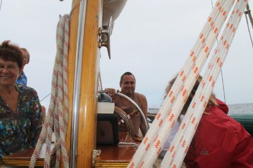 Mittlerweile sind wir klitschnass und legen uns unten erst mal trocken. Da hören wir über Funk die Salmon, die Kontakt zu uns aufnimmt. Wir tauschen unsere GPS Koordinaten aus und stellen fest, dass wir nur ca. 1 Meile voneinander entfernt sind. Durch die hohe Welle und dem Regen ist es nicht möglich, die Positionslichter des anderen Segelschiffs zu erkennen. Also beschließen wir beizudrehen, um eine Kollision zu vermeiden.