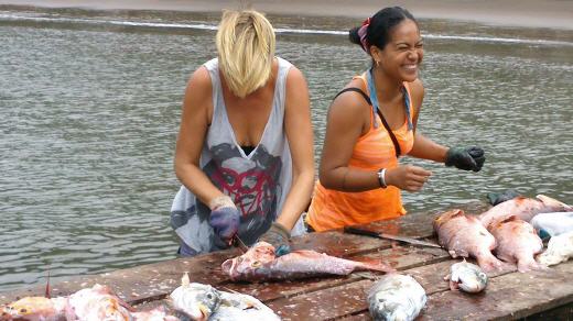 Inzwischen stehe ich jeden Freitag mit ihr am Steg und nehme Fische aus. Das macht mir total viel Spaß und ich ernte sogar ein wenig Respekt von den Fischern, weil ich so beherzt mit anpacke! Als Dank kann ich mir nach getaner Arbeit immer einen Fisch aussuchen.