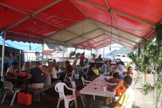 Mittlerweile treffen mehr Segler ein, darunter eine deutsche Familie, die mir zweimal hilft, den Heckanker wieder neu auszubringen. Mit Fritze und Heide verbringe ich manch schöne Abende mit Rum und Wein!