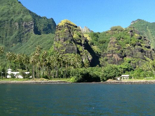 Schon die Bucht ist ein Traum. Sie ist umrahmt von grünen Bergen und an Land wächst unsere Begeisterung für französisch Polynesien mit jedem Schritt, den wir gehen. Die Natur ist überwältigend schön, die Menschen sind freundlich, die Häuser mit ihren schönen Gärten sind liebevoll gepflegt und alles ist sehr sauber. Kein Vergleich zu Panama! Aus dem öffentlichen Wasserhahn am Hafen kommt bestes Quellwasser und wir dürfen uns kostenlos bedienen. Die Einheimischen schenken uns Früchte und wollen auf nette Art und Weise uns Ihre selbstgebauten Holzfiguren, die sogenannten Tikis, verkaufen. Diese Insel ist die Einzige ohne Landeplatz oder Fährhafen, also sind die Segler die wenigen Touristen an Land.