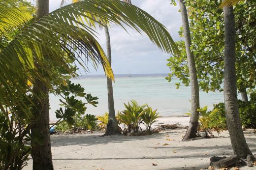 Auf einer Luftbildaufnahme von Raroia sieht es so aus, als ob das Atoll bis auf den Pass geschlossen ist. Das ist es auch, aber der Großteil des Riffes liegt knapp unter Wasser und es sind immer nur kleinere Inseln mit Palmen, die herausgucken. Vor unserem Ankerplatz ist gleich der Hauptort – es gibt nur den Einen. Nun aber los, Dingi ins Wasser und sich wie Ferdinand Magellan fühlen, der die Tuamotus auf seiner Weltumsegelung im Jahre 1521 entdeckt hat. An Land sind wir ein bisschen ernüchtert. Es ist nicht so gepflegt und aufgeräumt, wie auf den Marquesas. Auch die Vegetation ist nicht ganz so üppig. Dominierend sind die Kokospalmen, ab und zu ein Brotfruchtbaum, ansonsten viele Mangroven. Auch traditionelle Einbäume aus Holz entdecken wir nicht. Fischerboote mit 150PS Motoren und Kanus aus GFK. Aber es ist trotz allem ein Atoll mitten in der Südsee und schließlich wollen auch die Menschen hier ein angenehmes Leben führen. Sie sind vom Regenwasser abhängig und von Solar- und Windenergie. Hin und wieder entdecken wir auch einen Stromgenerator. Jedes Lebensmittel, jeder Haushaltsgegenstand wird mit dem Schiff zweimal im Monat angeliefert.