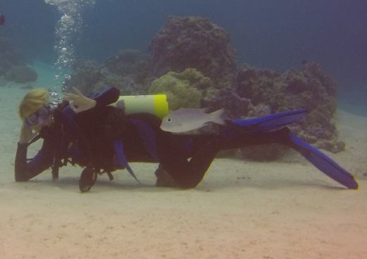 Tahaa hat zwei Pässe, den auf der windabgewandten Seite wollen wir betauchen. Rosi und Klaus von der Salmon wollen auch mit. So startet unser kleines Dinghi Rennen, denn wir haben beide den gleichen 2.3 PS Motor! Abwechselnd gehen wir runter, wir wissen ja nicht wie stark die Strömung ist und so bleibt immer ein Paar oben um die eventuell abgetriebenen Taucher wieder einzusammeln.