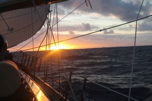 Nach 6 Tagen treffen wir endlich auf den ersehnten Wind und legen erstmals Kurs aufs Ziel an. Wir sind froh, dass es nun endlich in die richtige Richtung voran geht. Mit sieben Knoten Fahrt rauschen wir in Richtung Südseeparadies. Wir sind total entspannt und betrachten fast täglich faszinierende Sonnen Auf- und Untergänge.