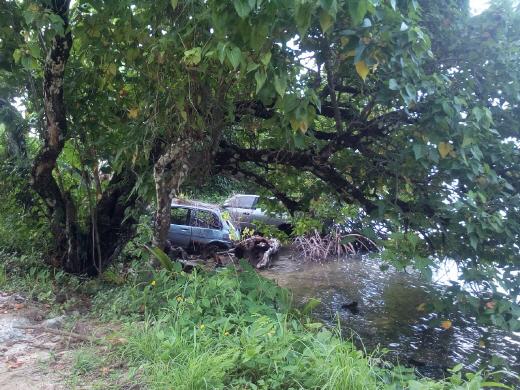 Zum Tauchen finden wir leider nichts in dem Atoll, aber nicht weit von uns entfernt ist ein schöner Schnorchelplatz. Nach drei Tagen schnorcheln, relaxen und spazieren gehen, heben wir den Anker und segeln nun zur Hauptstadt von Chuuk, nach Weno. Die vier Wochen sind um und wir brauchen ein neues Permit. Wir hoffen auf Wind, damit wir die 162 Seemeilen nicht mit der Hand steuern müssen. Ein Sprichwort passt ganz gut: Sei vorsichtig mit dem, was du dir wünscht. Es könnte in Erfüllung gehen! Ebenso: Entweder Hunger oder Schlecht, dazwischen gibt es nichts! Und so ist es auch. Auf dieser kurzen Strecke geraten wir von einem Squall in den Nächsten. Es ist ganz schön nervenaufreibend, immer achtsam zu sein. Schafft es die Steuerung oder muss man eingreifen? Aus welcher Richtung kommt der nächste Schauer? Wie lange hält er an? Können wir den Kurs halten? Und zwischen den Schauern herrscht Flaute. Im Chuuk- Atoll bekommen wir noch einmal einen kräftigen Regenschauer, dies ist ganz gut, denn sofort kommt der Schrubber raus und unser Deck ist wieder salzfrei! Kurze Zeit darauf, machen wir auch schon an der Hafenmauer von Weno fest. Diesmal haben wir keine lange Wartezeit auf die Beamten von Zoll und Immigration. Beim ersten Anfunken antwortet der Port Captain sofort und leitet alles für unsere Einklarierung in die Wege. Festgemacht an der Pier sind wir schockiert. Im Wasser treibt Müll, ein Langboot jagt das Nächste und der Schwell der Meeres schubst uns immer wieder an die Pier. Einer von uns steht dauerhaft Mitschiffs und versucht die Shangri La von der Wand abzudrücken, während der Andere die Angelegenheiten mit den Behörden regelt. In der Literatur über Chuuk steht, dass es für Segler im westlichen Bereich des Atolls nicht sicher ist. Es wird immer wieder von Überfällen auf Yachten berichtet. Dies macht uns misstrauisch und so bleiben wir erst mal hier. Wir werfen den Anker auf 7 Meter genau vor der kleinen Einfahrt zur Stadt. Das Chuuk Atoll besteht aus vielen kleinen Inseln innerhalb eines Saumriffs. Und fast jede Insel ist bewohnt. Doch die einzige Möglichkeit, um Lebensmittel und Dinge für den täglichen Gebrauch zu bekommen, sowie Banken, Post und ärztliche Versorgung ist nur auf Weno möglich. Hier herrscht mehr Bootsverkehr als im Hamburger Hafen und alle sind mit Zweitakter unterwegs. Wird ein Kanister mit Benzin betankt, kommt das dazu gehörende Zweitaktöl in den Kanister und die leere Kanne fliegt ins Meer. An Land setzt sich diese, wie sollen wir es nennen, Schweinerei fort. Wir glauben, die Segler sind die Einzigen, die die großen Müllcontainer nutzen. Auf einer kleinen geführten Tour mit einem Leihwagen, setzt sich dieser Anblick fort. In den Mangroven stehen Schrottautos – einfach vom Straßenrand geschubst und dem Verfall überlassen. Die Straßengräben sind voll von streunenden Hunden und Katzen, die nach Essbaren suchen. Von vornherein wollten wir nicht lange bleiben. Nur unser Permit verlängern und ein paar Tauchgänge machen, denn Chuuk ist unter den Taucher ein Must to do. Hier liegen 72 japanische Wracks auf dem Grund des Atolls.
