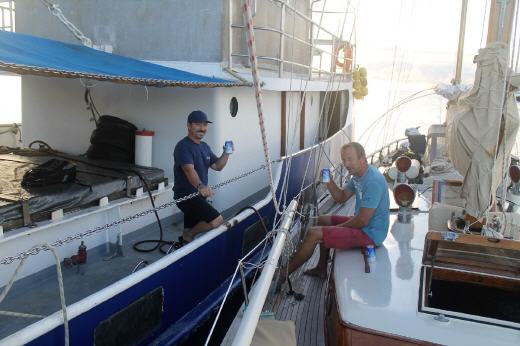 Am 20. Mai kommen Sigi und Michael, die im Internet auf unser „Mitsegeln und Tauchen“ Angebot gestoßen sind und gleich für dreieinhalb Wochen gebucht haben. Beide sind segelbegeistert und sehr erfahrene Taucher.