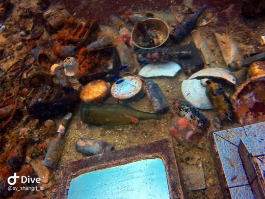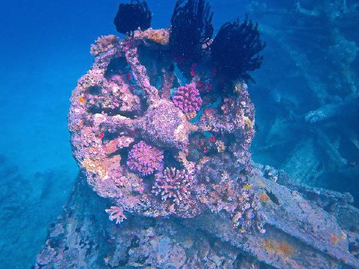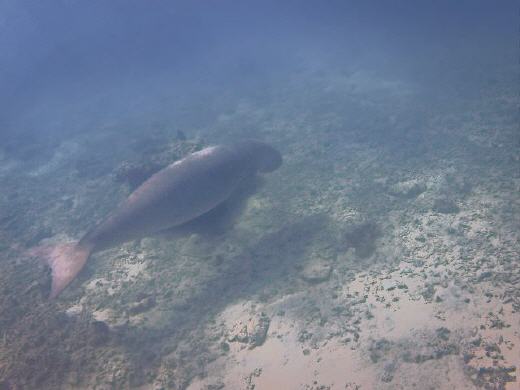 Man kann richtig sehen, wie die Natur sich alles einverleibt. Kanonenrohre bewachsen mit Korallen und Anemonen, künstliche Höhlen nun bewohnt mit Fischen. Sogar einen Dugong sehen wir! Endlich!