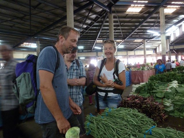 Bevor die Seereise beginnt, fahren wir erstmal gemeinsam mit dem Bus nach Lautoka, wo wir in diversen Supermärkten und auf dem riesigen Obst und Gemüsemarkt, Unmengen an Proviant einkaufen. Zu guter Letzt lassen wir uns noch 10 Päckchen mit Kawawurzeln im Wert von je 20,-US$ packen und fahren dann mit einem Lastentaxi zurück zum Schiff.