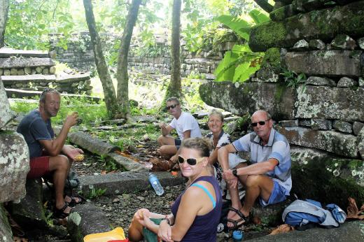 Natürlich haben wir wieder einiges auf unserem Zettel stehen, was erledigt werden muss. Der Motor verlangt einen Ölwechsel, unsere Gasflaschen zum Kochen müssen befüllt werden, es muss Einiges eingekauft werden und Djidji von der Donnazita fragt, ob Frank ihm bei der Reparatur vom Kühlschrank helfen könnte. Der übliche Riggcheck muss gemacht werden und wir müssen Wäsche waschen. So verbringen wir viel zu viel Zeit auf einer Stelle und das obwohl uns die Zeit im Nacken sitzt. Spätestens am 22.10. müssen wir im nächsten Staat sein, um unser Permit zu verlängern. Um Pohnpei auch noch zu bereisen, beschließen wir zu sechst ein Abfahrtsdatum. Pohnpei hat schließlich mehr zu bieten, als die Hauptstadt Kolonia. Unter anderem ankern wir direkt vor dem äußeren Saumriff, sehen Mantarochen beim Tauchen, duschen unter dem meistfotografierten Wasserfall Pohnpeis und picknicken zwischen den sagenumwobenen Steinen von Nan Madol.