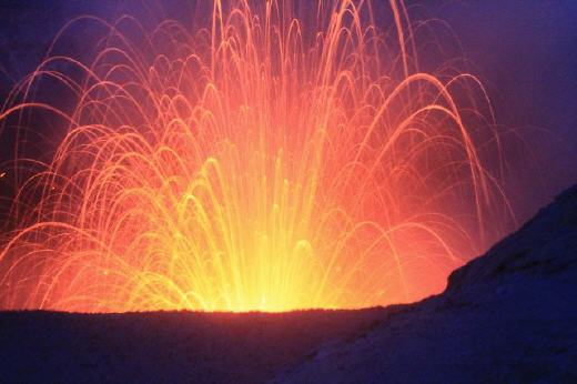 Aber es lohnt sich wirklich!!! Alle fünf bis zehn Minuten gibt es eine Druckwelle und glühende Lava schleudert in die Luft. Wir bleiben bis in die Dunkelheit und bestaunen dieses Naturschauspiel.