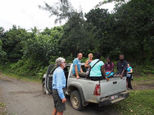 Port Resolution hat auch einen "Yachtclub". Hier werden Touren zum Vulkan, der Hauptattraktion auf Tanna, organisiert. So besteigen wir am Nachmittag des Zweiten Tages die Ladefläche eines Toyota Pickups und werden zum Fuß des Vulkans gebracht.